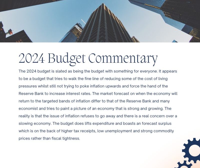 The 2024 budget is slated as being the budget with something for everyone. It appears to be a budget that tries to walk the fine line of reducing some of the cost of living pressures whilst still not trying to poke inflation upwards and force the hand of the Reserve Bank to increase interest rates.